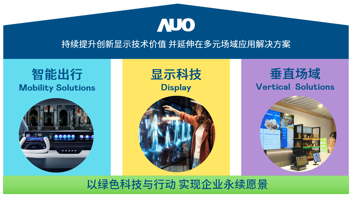 我们持续推动「双轴转型」,在精进显示技术附加价值(Go Premium),与深化垂直市场应用(Go Vertical)的策略下,对应凯发k8官方网站登录的优势竞争力与趋势,我们奠定显示科技、智慧移动、垂直场域三大永续营运支柱,在显示技术领域的根基之上,延伸布局多元场域应用解决方案。将先进显示科技助力智慧移动及垂直场域发展,并以绿色科技与行动为实践,在转型之路上贯彻永续经营之愿景。